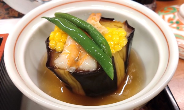 椀物には、コーン、インゲン、米ナスと夏に美味しい野菜が使われていて目にも美しく、そして美味。