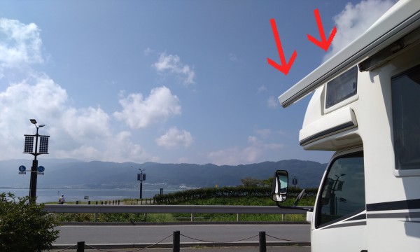 晴れ上がって気持ちのいいお天気になりました。風があるからオーニングは少しだけ出して、窓に影がさすくらいに。これだけでも車内への熱がやわらぎます。