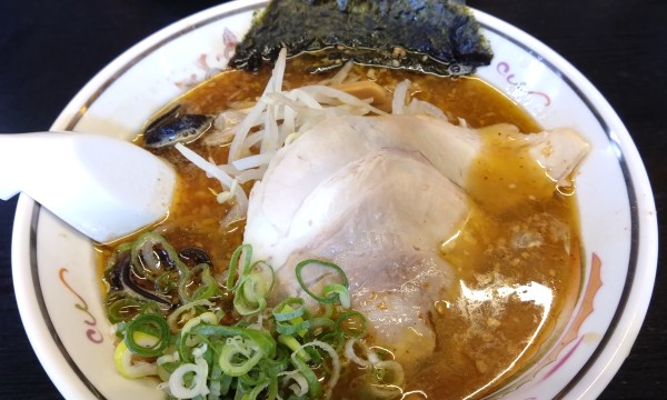 お昼近く、お世話になった「RVパークライト赤砂崎公園」をあとにしました。そして車で5分の「ハルピンラーメン下諏訪町役場前店」へ。