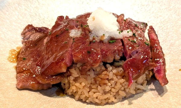 「ビーフ照り焼きステーキと特製山菜ピラフ」、堂々入場。