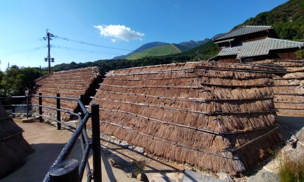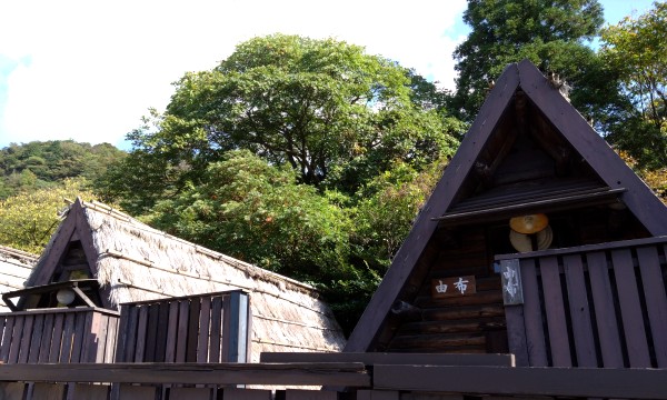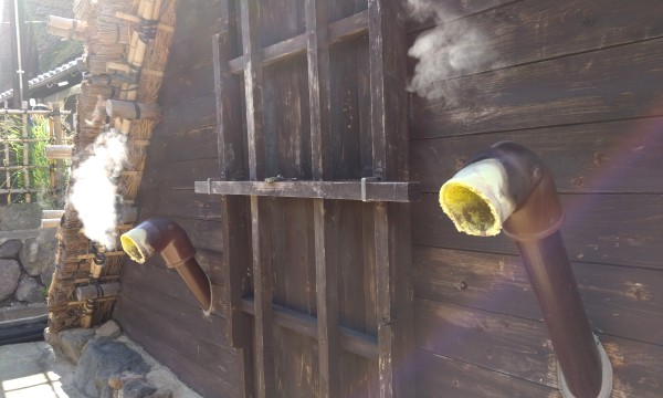 これが実際に湯の花を採取している小屋、いくつも並んでいます。中は見られませんが見学のための小屋があるので、内部がどんなふうになっているか知ることができます。