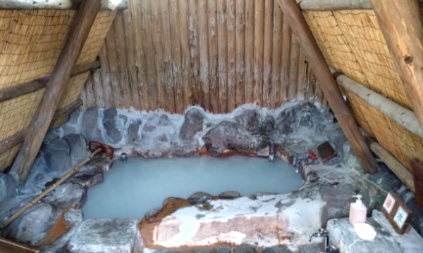 そして今回は明礬温泉にある「みょうばん湯の里」で温泉を満喫します。ここには「大露天岩風呂」と「貸切湯」の2種類のお風呂、売店、見学できる湯の花小屋、湯の花を採取している小屋、などがあります。