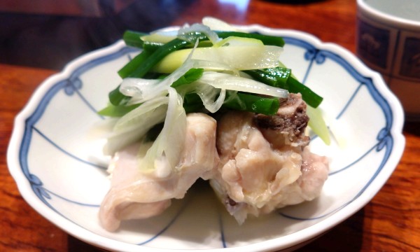 お次は鶏肉が投入され、頃合いをみてネギをしゃぶしゃぶして盛り付けてくれます。はあ~、美味しそう、いただきま~す。お、旨味のある鶏とシャキシャキのネギ、最高。添えてあるポン酢や柚子胡椒も美味なり。