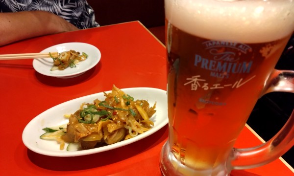 博多駅地下街でめっちゃ賑わっていた「餃子屋 弐ノ弐」で生ビール。