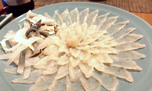このお店にした決め手は、夜は単品でふぐ料理がいただけること。ふぐのコース料理を扱う店はたくさんありましたが、正直、コース料理によく入っているふぐ唐揚げとか無くていい(笑)てっさとてっちりだけ堪能したいの。とういことで予約時に注文済みの、
