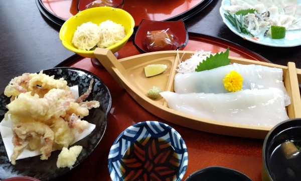イカ刺し、ゲソ天、イカしゅうまいの「仙崎イカ御膳」と、