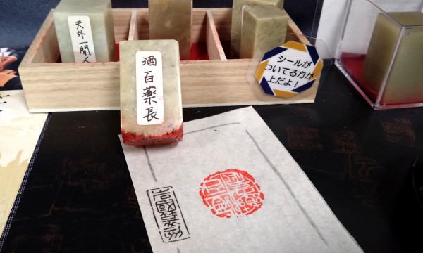 施設の一角に篆刻(はんこを作る)のコーナーあり。「なぜここで篆刻?」と思ったら、「錦帯橋」を創建した岩国藩の三代目藩主が長崎から招いた医者・独立性易禅師(どくりゅうしょうえきぜんじ)は日本に初めて篆刻文化を伝えた人物なんですって。