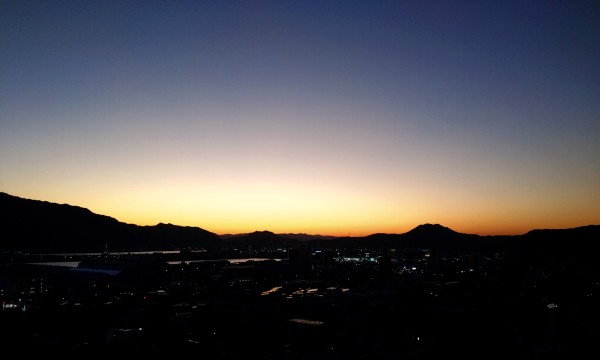 そしてこの日の最後は「道の駅のんたの酒蔵」(東広島市)から45キロ、三原市にある「道の駅みはら神明の里」へ。ここは高台にあるので、夕焼けがきれいなんだよねえ。