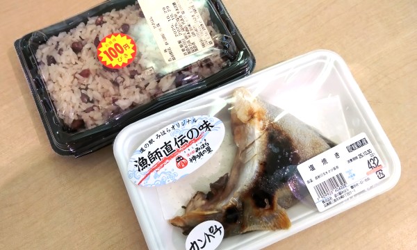 まだ道の駅のショップが開いていたので、今夜のおかずを物色。赤飯とカンパチのカマ塩焼きゲット~♪