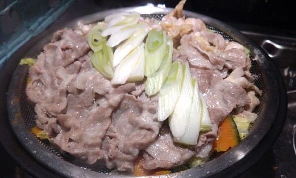 「無印良品」のステンレス平ザルが蒸し料理にぴったりというので買ってみまして、豚しゃぶ肉、白菜、南瓜薄切り、ネギを蒸してみました。フライパンにぴったり収まって、蒸しあがりバッチリ。おいしくできました。
