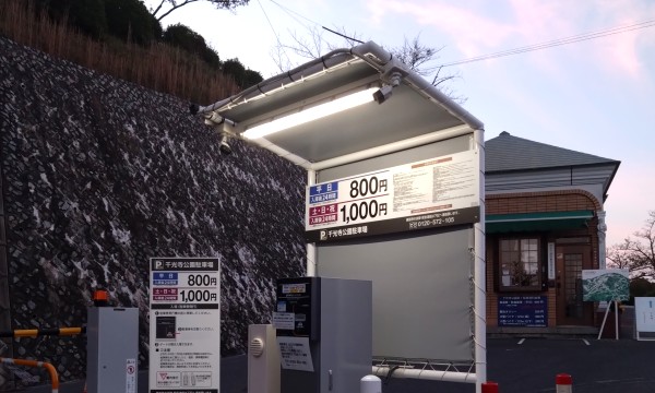 着いたのは尾道市にある「千光寺公園駐車場」。駐車料金は平日24時間800円、土日祝は1,000円です(写真右奥に公衆トイレあり)。