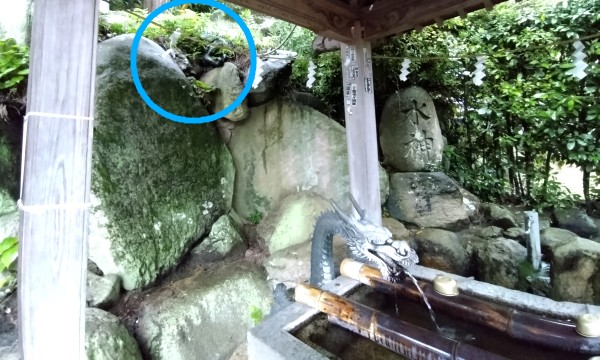 手を清めようと手水舎に立ち寄りました。龍の口から出る水で手を清めて、ふと左上を見ると、あっ!龍の体の続きがあるよ、珍しいなあ。
