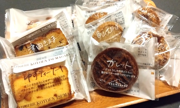 お目当ては洋菓子店「ケーキハウスツマガリ」。気になってしまった「キルギスの白い蜂蜜」と共に、焼き菓子を色々買いました。