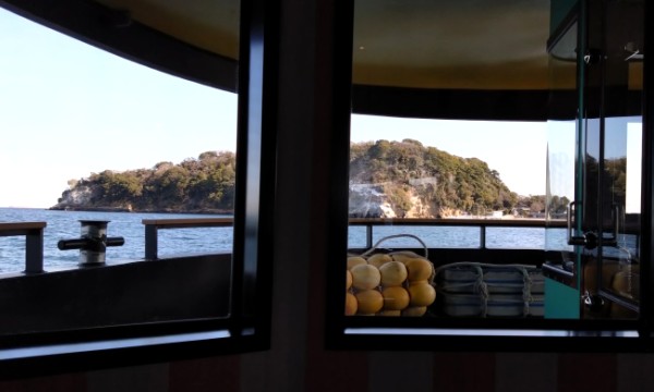 東京湾唯一の自然島「猿島」までは10分の船旅、あっという間に島が近づいてきました!