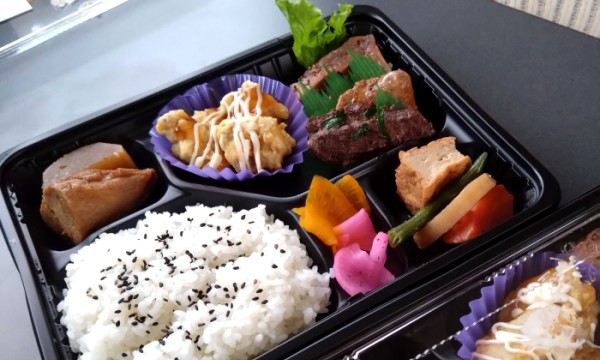 スペアリブ、照り焼き、焼肉風、南蛮(チキン南蛮風)、煮つけとマグロ料理が5種入ったお弁当。煮つけのマグロはしっとり美味しく、スペアリブのマグロはお肉のよう。他もそれぞれの食感と味付けが楽しめてナイスだったな、コレ。