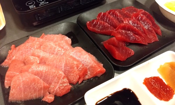 北大西洋漁場の本マグロ、赤身とトロのセット。お値段3,000円ちょっと、2人にはちょうど良い量やね。