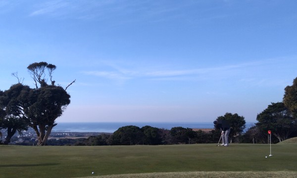 そして今日は海が見えるゴルフ場「房州カントリークラブ」でプレー。良いお天気になってよかった~、やっぱり南房総はあたたかいやね。