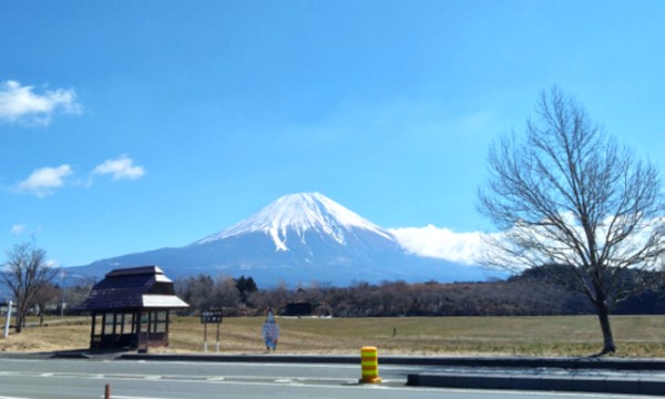 国道1号線から国道139号線へ入り、山梨にむけて北上。途中通過した朝霧高原からはすばらしい富士山の姿が見られました。