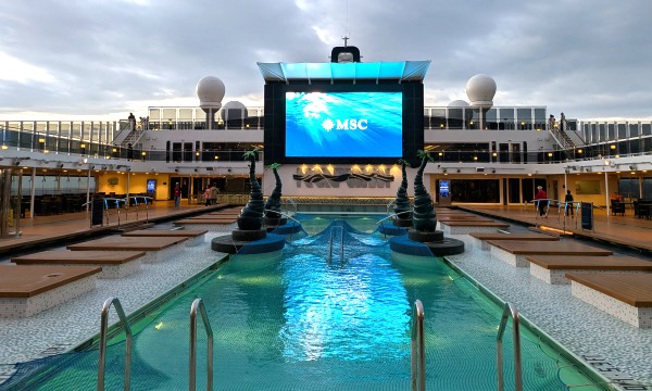 それは巨大クルーズ船「MSCベリッシマ」でのクルーズ旅。那覇を出港して石垣島・台湾・宮古島を巡って那覇港に戻る阪急交通社のクルーズツアーに参加しました。