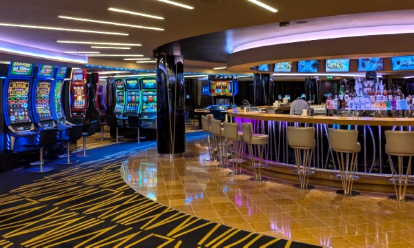 集合場所はデッキ7の「インペリアルカジノ」。これは人のいない朝に撮ったものですが、バーもカッコいいよねえ。ここで「CSI:ベガス」(犯罪捜査モノの海外ドラマ)ごっこしたいわ~。