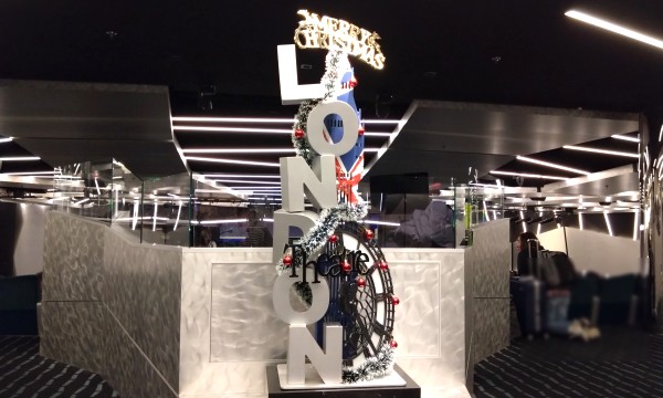 デッキ5~7の華麗な吹き抜け空間・インフィニティアトリウムに下りて、ショップやレストランが並ぶデッキ6のガレリアベリッシマを通り抜けて奥にある「ロンドンシアター」へ。
