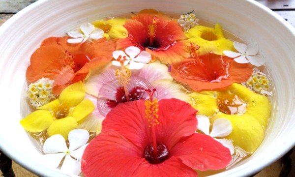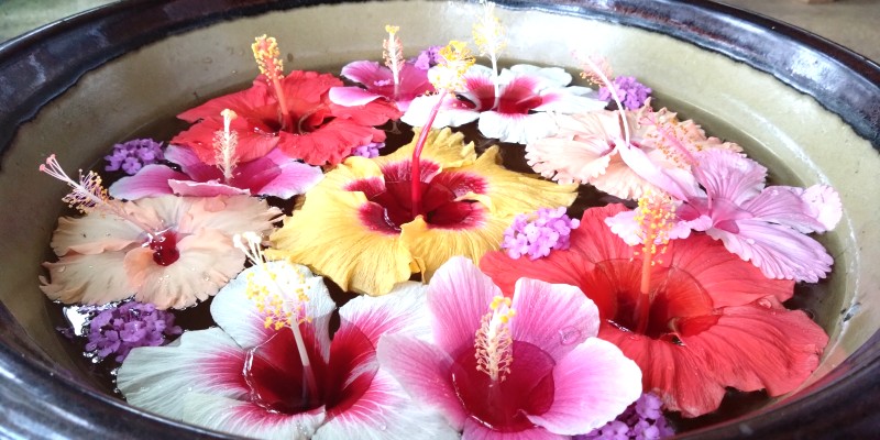 最後にハートの形に集められたブーゲンビリアの花びらの前、ハート型に手を合わせてシニア夫婦が記念撮影(笑)ドライバーさん、撮影ありがとうございました。
