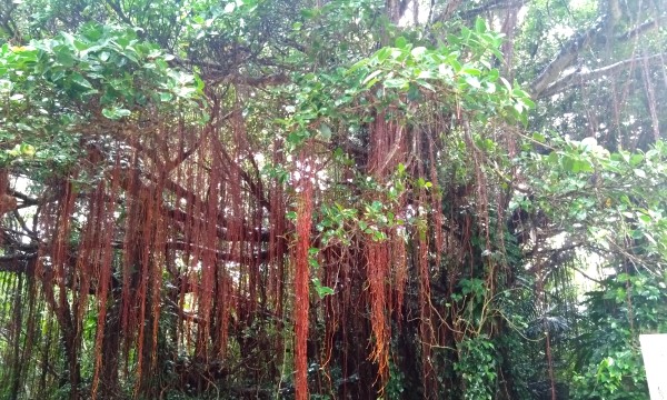 宮古島有数の美しいビーチ「前浜ビーチ」の対岸に位置する「竜宮城展望台」へ。駐車場脇にあった大きなガジュマルの木、雨で生き生きして見える。そして、